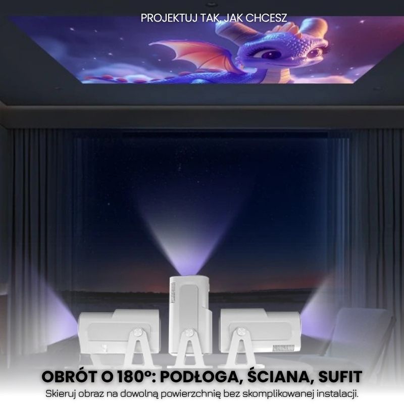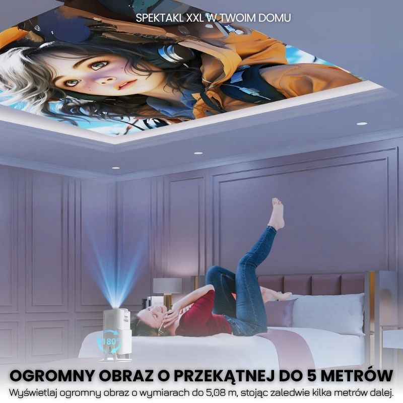 Zmień ściany, sufity lub dowolny kąt w ekran do wieczorów filmowych, pokazów plenerowych lub prezentacji z niezrównaną łatwością.