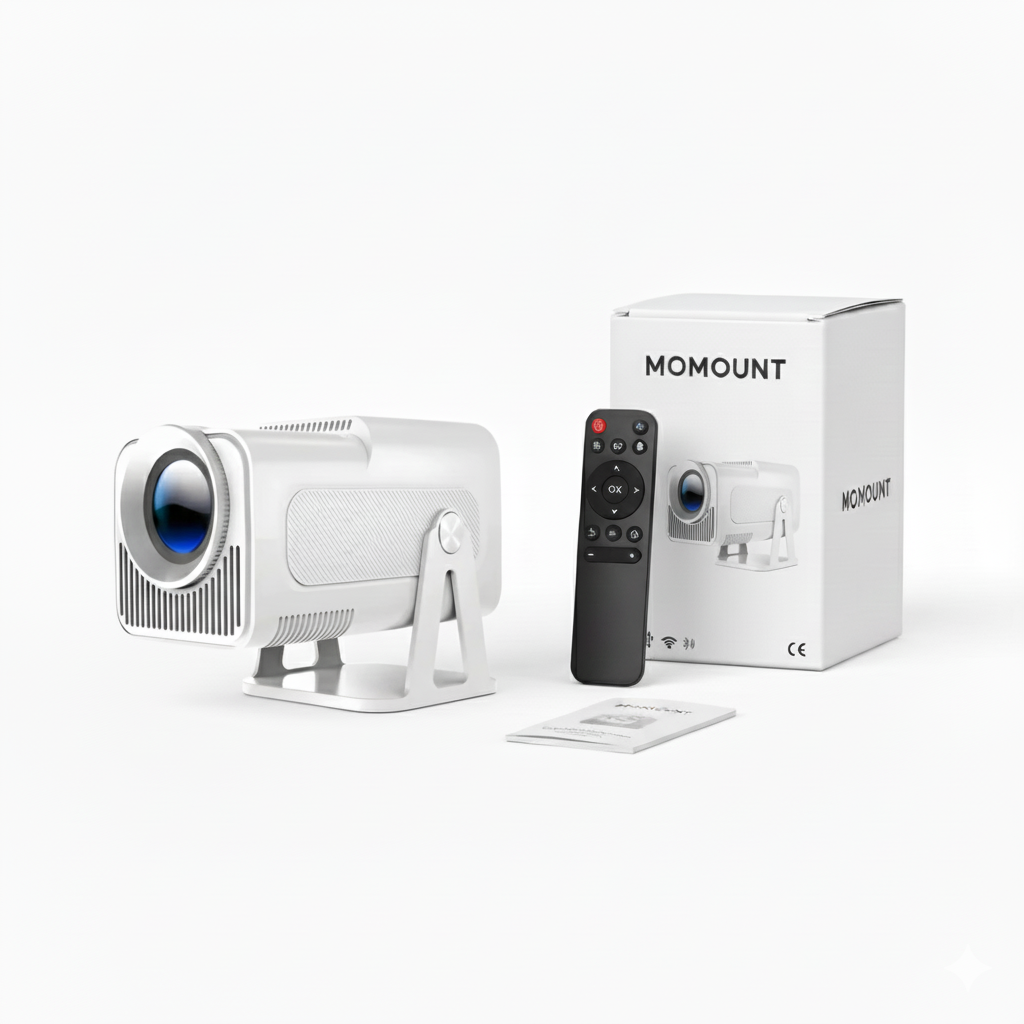 Ciesz się obrazem o kinowej jakości dzięki Momount™. Jego 200-calowy ekran oferuje natywną rozdzielczość Full HD i obsługuje formaty 1080P, 2K i 4K UHD, przekształcając każdą przestrzeń w dynamiczne kino, idealne do oglądania filmów, seriali lub prezentacji.